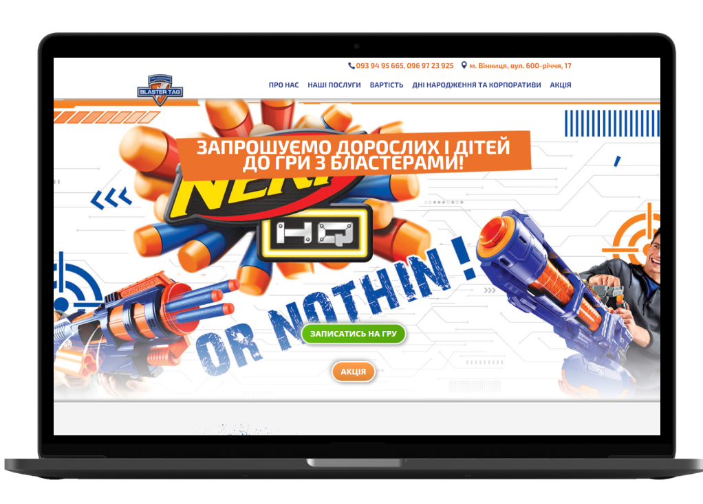 Обратился к нам клиент с необходимостью увеличить количество заявок и посещаемость его развлекательного центра в г. Винница «Blaster tag»